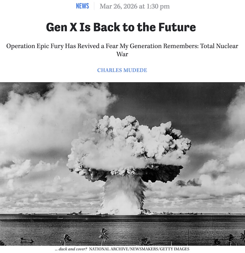 My generation was also the last to live, as young adults, within a social reality described as the Cold War. We saw the bomb shelters, and were taught in school to “duck and cover” if a nuclear weapon, launched by the Soviets or its allies, hit our city.